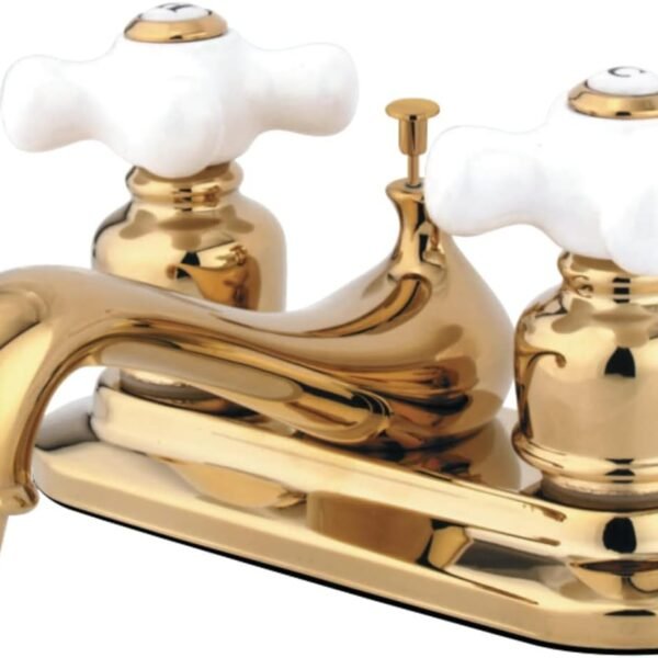 4-Inch Centerset Lavatory Faucet with Porcelain Cross Handle, Polished Brass