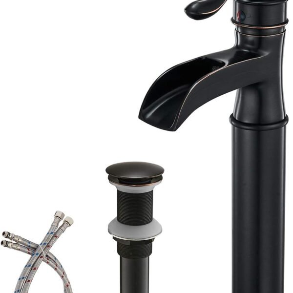 Waterfall Spout Oil Rubbed Bronze Bathroom Faucet Single Handle One Hole Vessel Sink Faucet ORB Lavatory Faucets Deck Mount Tall Body Commercial