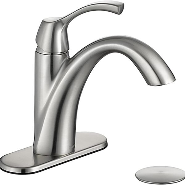 Brushed Nickel 1-Handle Single Hole Bathroom Faucet, 3-Hole Deck Plate, Pop-Up Drain and Water Supply Lines Included,