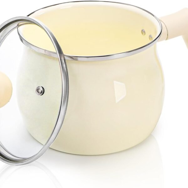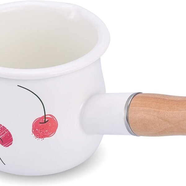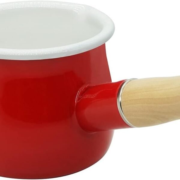 Enamel Milk Pot, Small Enamel Saucepan Milk Pot Butter Warmer 4 Inch 17 Oz Enamel Small Sauce Pan with Wooden Handle, Perfect Size for Heating Smaller Liquid Portions