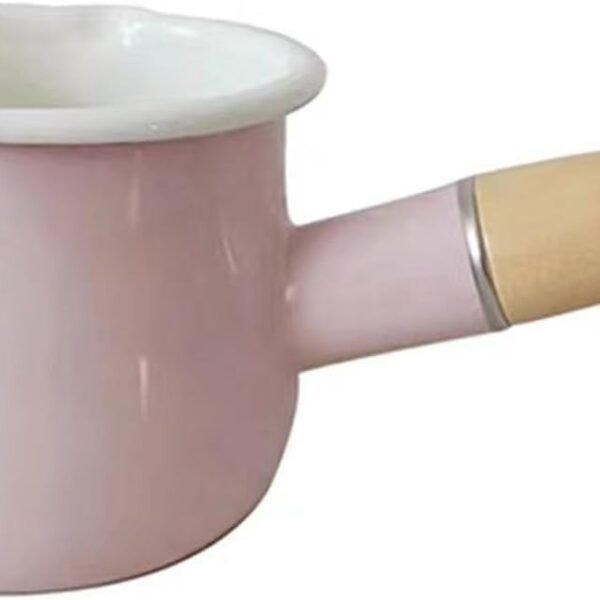 Enamel Milk Pot, Butter Warmer Non-stick Mini Saucepan, 4 Inch 17 Oz Small Cookware with Wooden Handle(Pink)