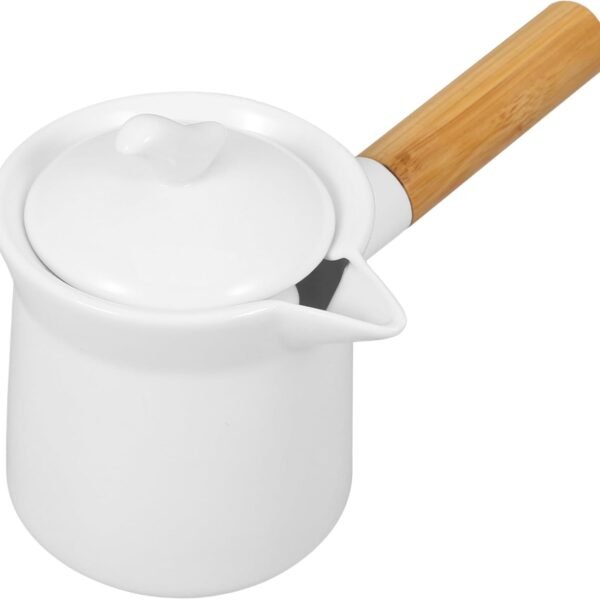 Wooden Handle Ceramic Milk Pan Small Sauce Pot Enamel Cookware Coffe Creamer Coffee Essentials Basting Pot Small Milk Saucepan Choc White Baby Noodle Pot Ceramics Vintage