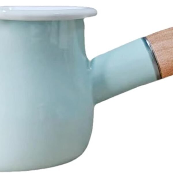 0.6qt Mini Enamel Milk Pot Insulated Wooden Handle 2 Pour Spouts Small Food Warmer Cute Saucepan (D015,Mint Green)