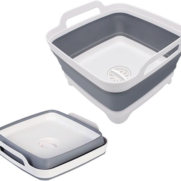 2.4 Gal(9L) Collapsible Dish Basin with Drain Plug, Space Saving Outdoor Multiuse Foldable Sink Tub, Dishpan, Kitchen Storage Tray for Camping, Vegetable Washing, RV (Gray)