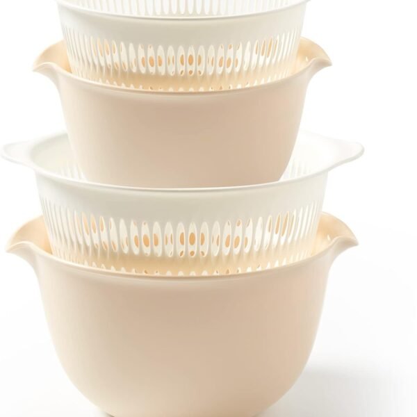 2 in 1 Kitchen Colander Set with Bowl Strainer (2 Sets 3 Qt),BPA Free Plastic Fruits and Vegetable Washing Basket,Dishwasher Friendly Double Layered Drain Basin,for Pasta Salad Berry Cleaning Mixing