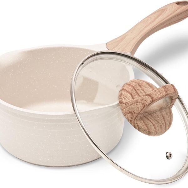 1.5 Quart Saucepan with Lid Nonstick Stone Coating Sauce Pan Milk Pan for Cooking Inudction Pot(Beige)